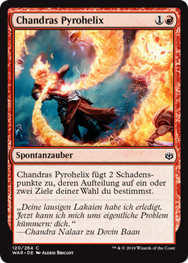 | Rules | Chandra's Pyrohelix deals 2 damage divided as you choose among one or two targets. |