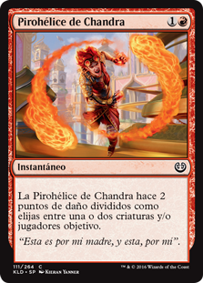 | Rules | Chandra's Pyrohelix deals 2 damage divided as you choose among one or two targets. |