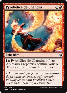 | Rules | Chandra's Pyrohelix deals 2 damage divided as you choose among one or two targets. |