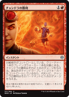 | Rules | Chandra's Triumph deals 3 damage to target creature or planeswalker an opponent controls. Chandra's Triumph deals 5 damage instead if you control a Chandra planeswalker. |