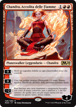 | Rules | 0: Put a loyalty counter on each red planeswalker you control. 0: Create two 1/1 red Elemental creature tokens. They gain haste. Sacrifice them at the beginning of the next end step. −2: You may cast target instant or sorcery card with mana value 3 or less from your graveyard. If that spell would be put into your graveyard this turn, exile it instead. |