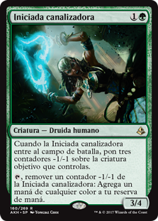 | Rules | When Channeler Initiate enters the battlefield, put three -1/-1 counters on target creature you control. , Remove a -1/-1 counter from Channeler Initiate: Add one mana of any color. |