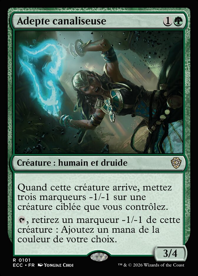 | Rules | When Channeler Initiate enters the battlefield, put three -1/-1 counters on target creature you control. , Remove a -1/-1 counter from Channeler Initiate: Add one mana of any color. |