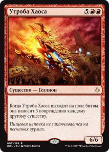 | Rules | When Chaos Maw enters the battlefield, it deals 3 damage to each other creature. |