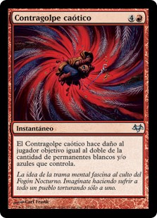 | Rules | Chaotic Backlash deals damage to target player equal to twice the number of white and/or blue permanents they control. |
