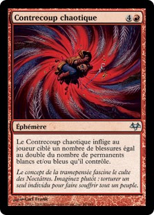 | Rules | Chaotic Backlash deals damage to target player equal to twice the number of white and/or blue permanents they control. |