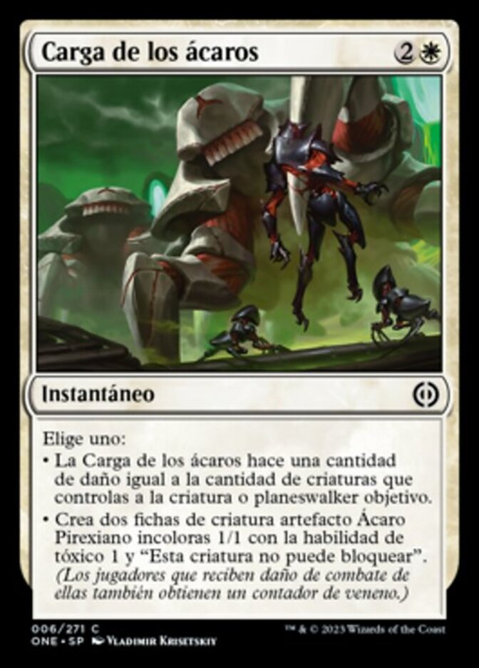 • Create two 1/1 colorless Phyrexian Mite artifact creature tokens with toxic 1 and "This creature can't block." (Players dealt combat damage by them also get a poison counter.)