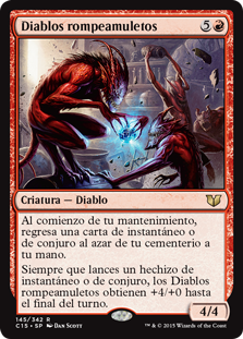 | Rules | At the beginning of your upkeep, return an instant or sorcery card at random from your graveyard to your hand. Whenever you cast an instant or sorcery spell, Charmbreaker Devils gets +4/+0 until end of turn. |