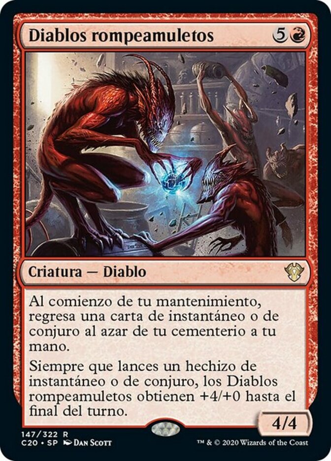 | Rules | At the beginning of your upkeep, return an instant or sorcery card at random from your graveyard to your hand. Whenever you cast an instant or sorcery spell, Charmbreaker Devils gets +4/+0 until end of turn. |