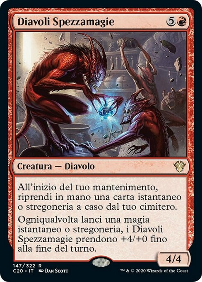| Rules | At the beginning of your upkeep, return an instant or sorcery card at random from your graveyard to your hand. Whenever you cast an instant or sorcery spell, Charmbreaker Devils gets +4/+0 until end of turn. |