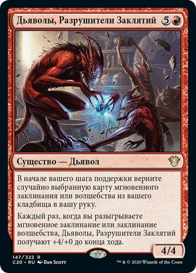 | Rules | At the beginning of your upkeep, return an instant or sorcery card at random from your graveyard to your hand. Whenever you cast an instant or sorcery spell, Charmbreaker Devils gets +4/+0 until end of turn. |