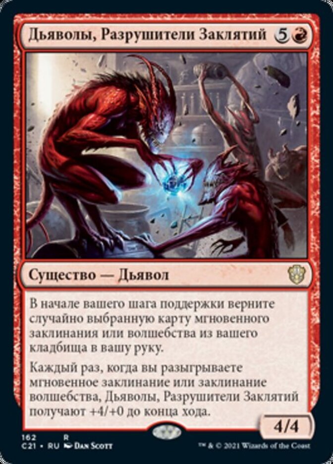 | Rules | At the beginning of your upkeep, return an instant or sorcery card at random from your graveyard to your hand. Whenever you cast an instant or sorcery spell, Charmbreaker Devils gets +4/+0 until end of turn. |