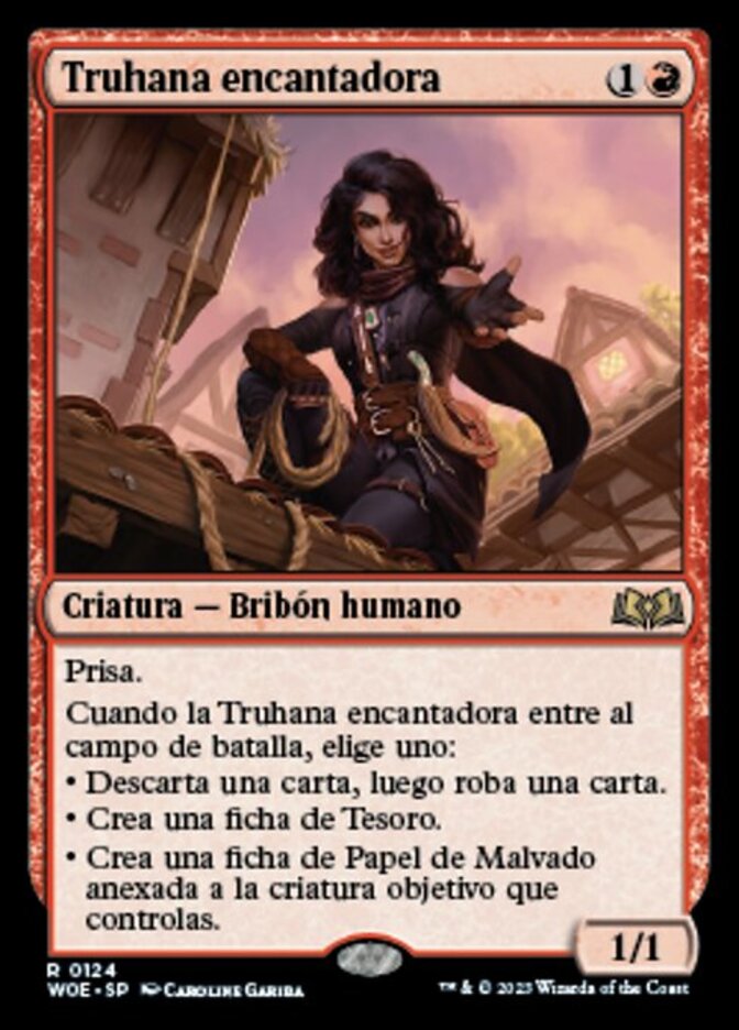 | Rules | Haste When Charming Scoundrel enters the battlefield, choose one — • Discard a card, then draw a card. • Create a Treasure token. • Create a Wicked Role token attached to target creature you control. |