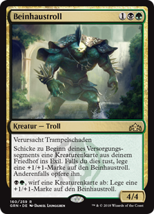 | Rules | Trample At the beginning of your upkeep, exile a creature card from your graveyard. If you do, put a +1/+1 counter on Charnel Troll. Otherwise, sacrifice it. , Discard a creature card: Put a +1/+1 counter on Charnel Troll. |