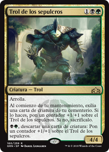 | Rules | Trample At the beginning of your upkeep, exile a creature card from your graveyard. If you do, put a +1/+1 counter on Charnel Troll. Otherwise, sacrifice it. , Discard a creature card: Put a +1/+1 counter on Charnel Troll. |