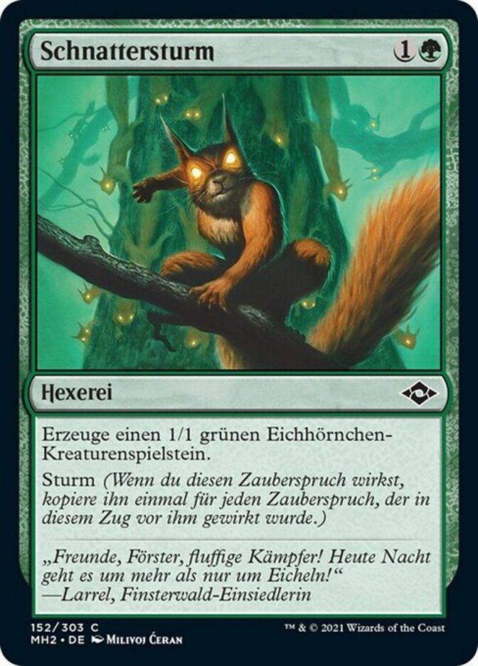 | Rules | Create a 1/1 green Squirrel creature token. Storm (When you cast this spell, copy it for each spell cast before it this turn.) |