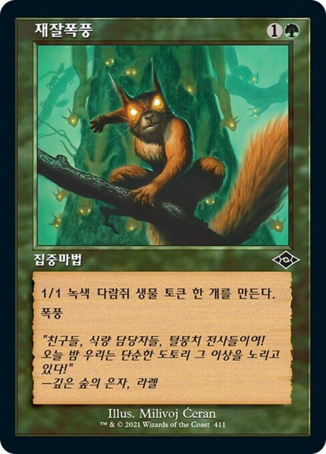 | Rules | Create a 1/1 green Squirrel creature token. Storm (When you cast this spell, copy it for each spell cast before it this turn.) |