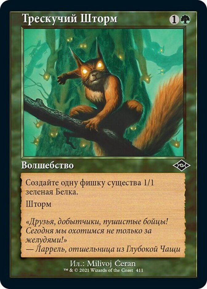 | Rules | Create a 1/1 green Squirrel creature token. Storm (When you cast this spell, copy it for each spell cast before it this turn.) |