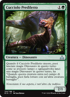 | Rules | When Cherished Hatchling dies, you may cast Dinosaur spells this turn as though they had flash, and whenever you cast a Dinosaur spell this turn, it gains "When this creature enters the battlefield, you may have it fight another target creature." |