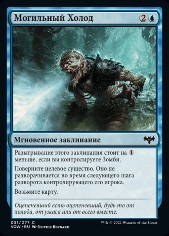 | Rules | This spell costs less to cast if you control a Zombie. Tap target creature. It doesn't untap during its controller's next untap step. Draw a card. |