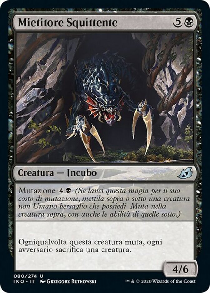 | Rules | Mutate (If you cast this spell for its mutate cost, put it over or under target non-Human creature you own. They mutate into the creature on top plus all abilities from under it.) Whenever this creature mutates, each opponent sacrifices a creature. |