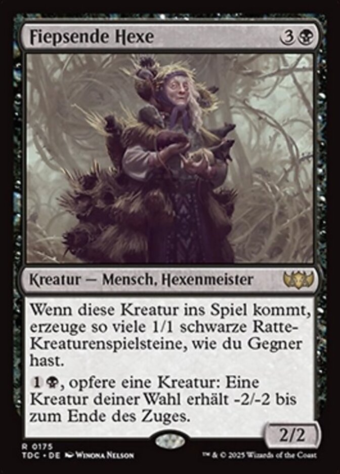 | Rules | When Chittering Witch enters the battlefield, create a number of 1/1 black Rat creature tokens equal to the number of opponents you have. , Sacrifice a creature: Target creature gets -2/-2 until end of turn. |