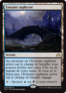 | Rules | As Choked Estuary enters the battlefield, you may reveal an Island or Swamp card from your hand. If you don't, Choked Estuary enters the battlefield tapped. : Add or . |