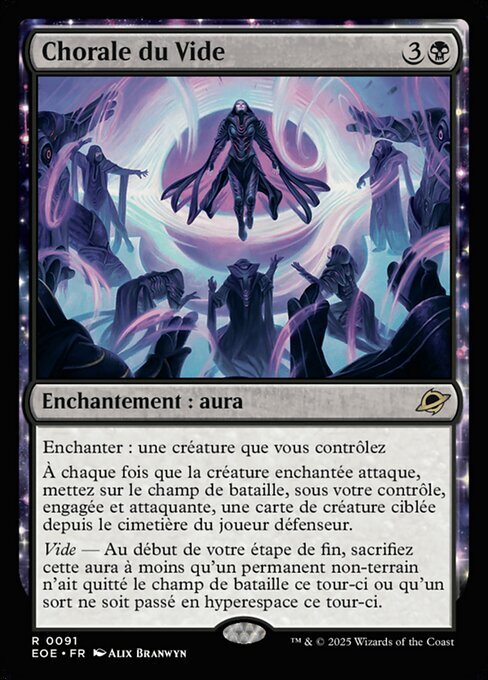 | Rules | Enchant creature you control Whenever enchanted creature attacks, put target creature card from defending player's graveyard onto the battlefield under your control tapped and attacking. Void — At the beginning of your end step, sacrifice this Aura unless a nonland permanent left the battlefield this turn or a spell was warped this turn. |