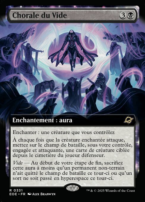 | Rules | Enchant creature you control Whenever enchanted creature attacks, put target creature card from defending player's graveyard onto the battlefield under your control tapped and attacking. Void — At the beginning of your end step, sacrifice this Aura unless a nonland permanent left the battlefield this turn or a spell was warped this turn. |