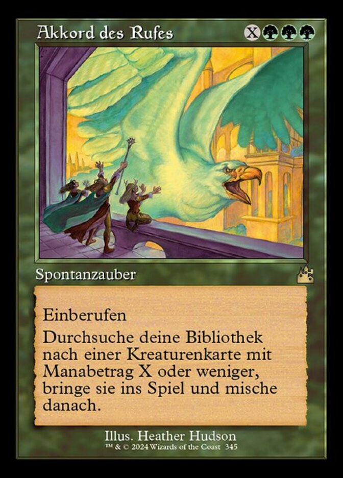 | Rules | Convoke (Your creatures can help cast this spell. Each creature you tap while casting this spell pays for or one mana of that creature's color.) Search your library for a creature card with mana value X or less, put it onto the battlefield, then shuffle. |