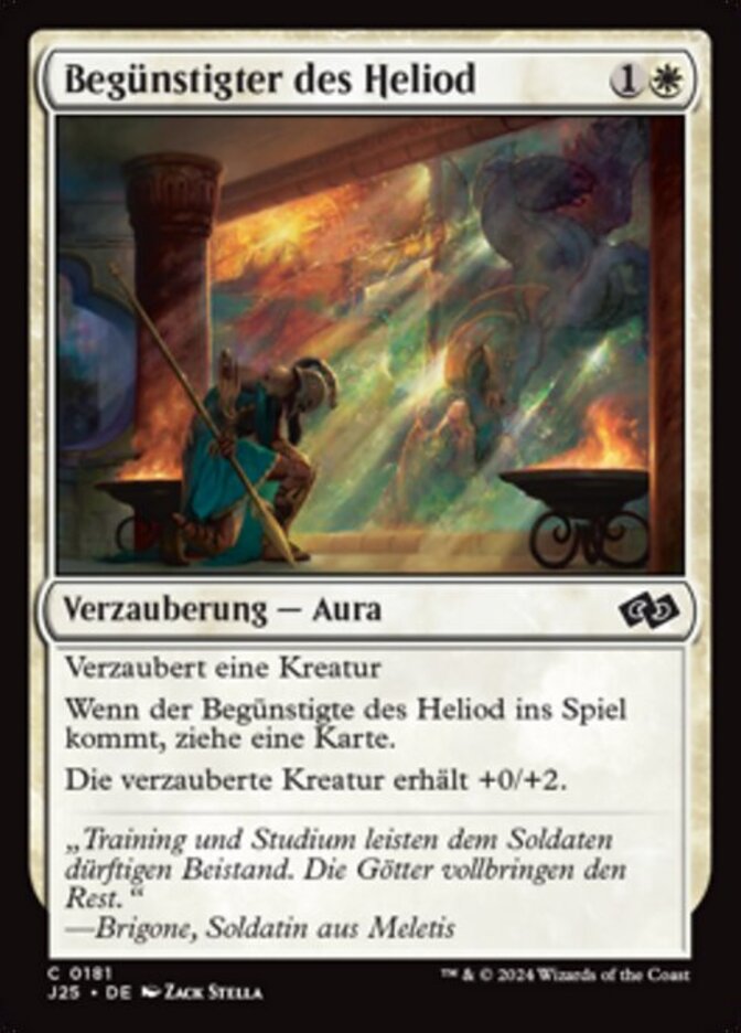 | Rules | Enchant creature When Chosen by Heliod enters the battlefield, draw a card. Enchanted creature gets +0/+2. |