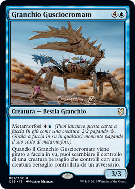 | Rules | Morph (You may cast this card face down as a 2/2 creature for . Turn it face up any time for its morph cost.) When Chromeshell Crab is turned face up, you may exchange control of target creature you control and target creature an opponent controls. |
