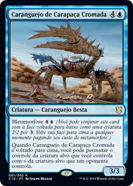 | Rules | Morph (You may cast this card face down as a 2/2 creature for . Turn it face up any time for its morph cost.) When Chromeshell Crab is turned face up, you may exchange control of target creature you control and target creature an opponent controls. |