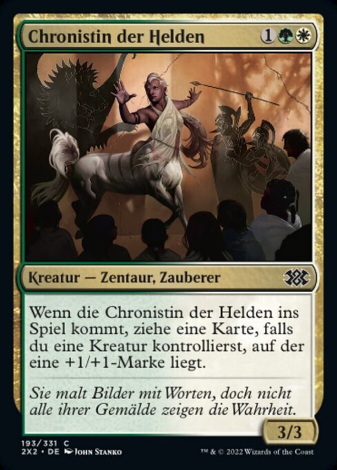 | Rules | When Chronicler of Heroes enters the battlefield, draw a card if you control a creature with a +1/+1 counter on it. |