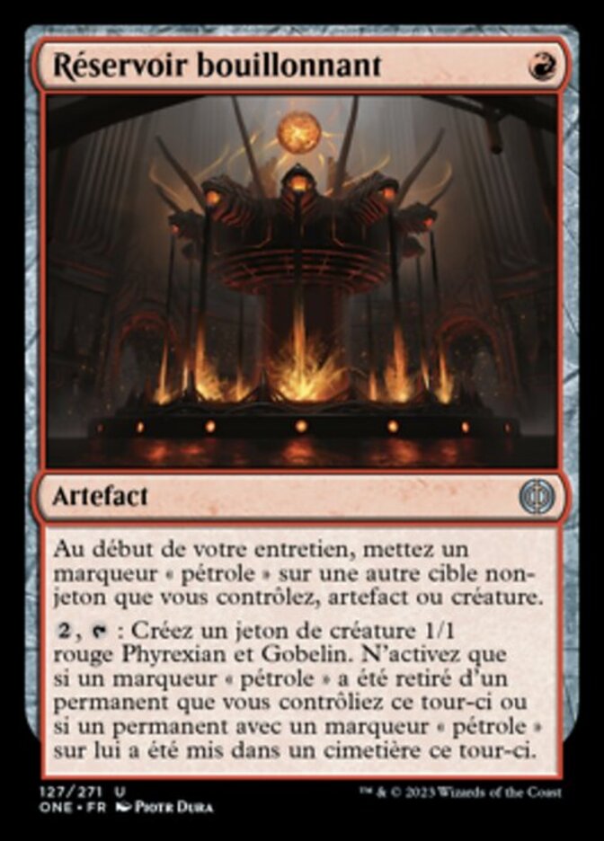 | Rules | At the beginning of your upkeep, put an oil counter on another target nontoken artifact or creature you control. , : Create a 1/1 red Phyrexian Goblin creature token. Activate only if an oil counter was removed from a permanent you controlled this turn or a permanent with an oil counter on it was put into a graveyard this turn. |