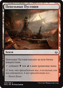 | Rules | Cinder Barrens enters the battlefield tapped. : Add or . |