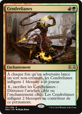 | Rules | Whenever an opponent casts a noncreature spell, Cindervines deals 1 damage to that player. , Sacrifice Cindervines: Destroy target artifact or enchantment. Cindervines deals 2 damage to that permanent's controller. |