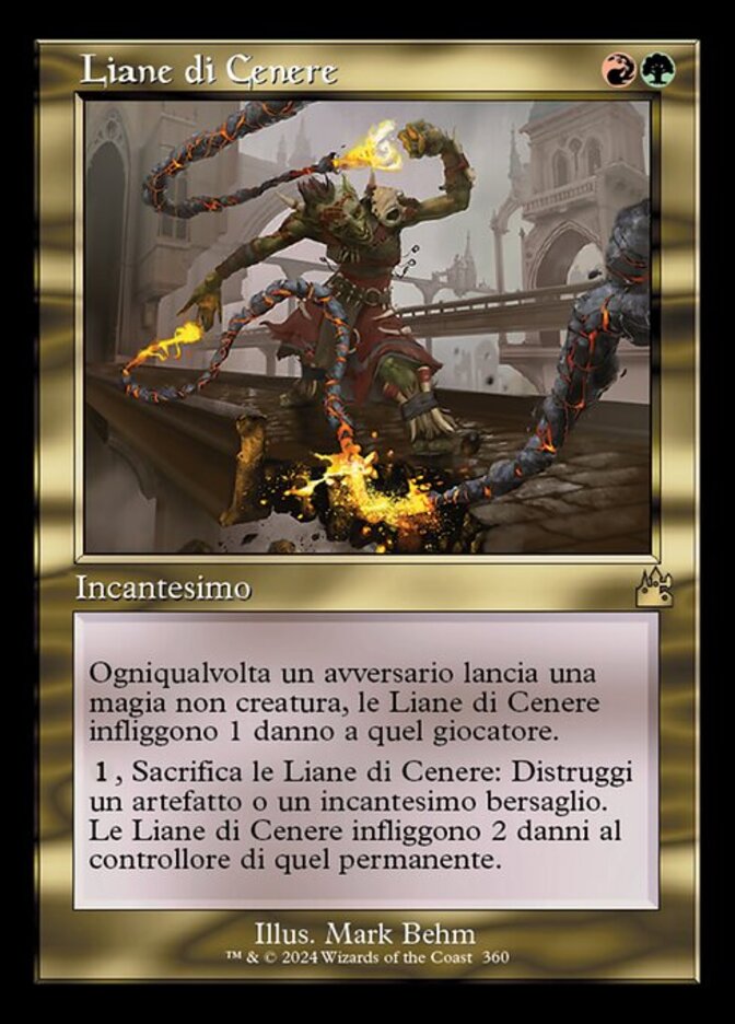 | Rules | Whenever an opponent casts a noncreature spell, Cindervines deals 1 damage to that player. , Sacrifice Cindervines: Destroy target artifact or enchantment. Cindervines deals 2 damage to that permanent's controller. |