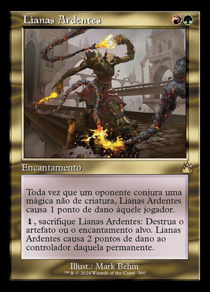 | Rules | Whenever an opponent casts a noncreature spell, Cindervines deals 1 damage to that player. , Sacrifice Cindervines: Destroy target artifact or enchantment. Cindervines deals 2 damage to that permanent's controller. |