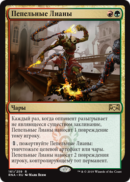 | Rules | Whenever an opponent casts a noncreature spell, Cindervines deals 1 damage to that player. , Sacrifice Cindervines: Destroy target artifact or enchantment. Cindervines deals 2 damage to that permanent's controller. |