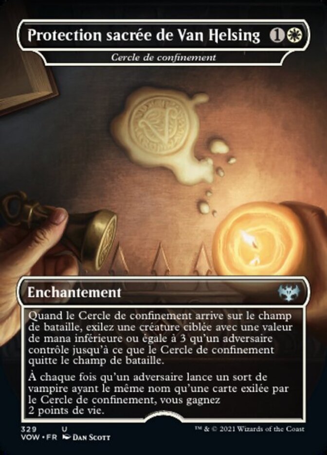 | Rules | When Circle of Confinement enters the battlefield, exile target creature an opponent controls with mana value 3 or less until Circle of Confinement leaves the battlefield. Whenever an opponent casts a Vampire spell with the same name as a card exiled with Circle of Confinement, you gain 2 life. |