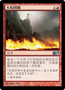 | Rules | Whenever a creature without flying attacks you or a planeswalker you control, Circle of Flame deals 1 damage to that creature. |