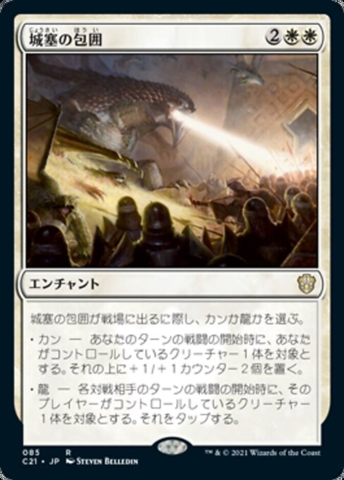 | Rules | As Citadel Siege enters the battlefield, choose Khans or Dragons. • Khans — At the beginning of combat on your turn, put two +1/+1 counters on target creature you control. • Dragons — At the beginning of combat on each opponent's turn, tap target creature that player controls. |