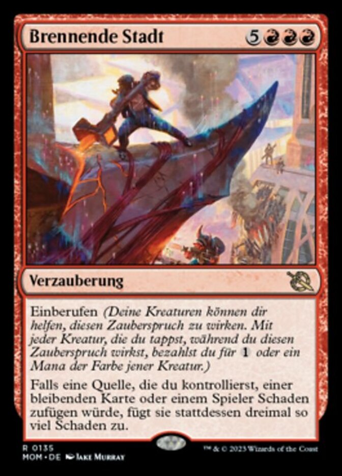 | Rules | Convoke (Your creatures can help cast this spell. Each creature you tap while casting this spell pays for or one mana of that creature's color.) If a source you control would deal damage to a permanent or player, it deals triple that damage instead. |