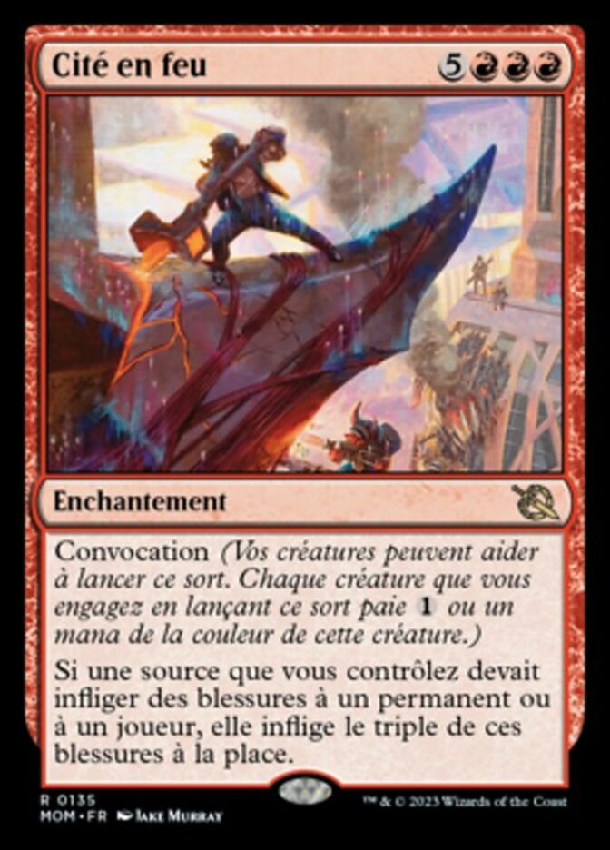 | Rules | Convoke (Your creatures can help cast this spell. Each creature you tap while casting this spell pays for or one mana of that creature's color.) If a source you control would deal damage to a permanent or player, it deals triple that damage instead. |