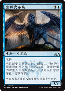 | Rules | Flying When Citywatch Sphinx dies, surveil 2. (Look at the top two cards of your library, then put any number of them into your graveyard and the rest on top of your library in any order.) |
