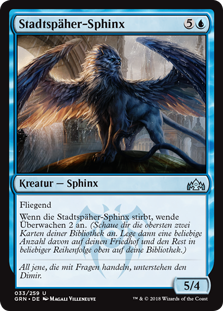 | Rules | Flying When Citywatch Sphinx dies, surveil 2. (Look at the top two cards of your library, then put any number of them into your graveyard and the rest on top of your library in any order.) |