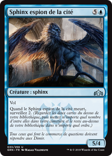 | Rules | Flying When Citywatch Sphinx dies, surveil 2. (Look at the top two cards of your library, then put any number of them into your graveyard and the rest on top of your library in any order.) |