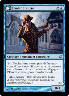 | Rules | : Draw a card, then discard a card. If a creature card is discarded this way, untap Civilized Scholar, then transform it. // At the beginning of your end step, if Homicidal Brute didn't attack this turn, tap Homicidal Brute, then transform it. |