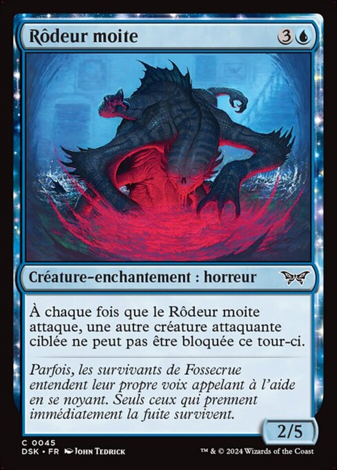 | Rules | Whenever Clammy Prowler attacks, another target attacking creature can't be blocked this turn. |